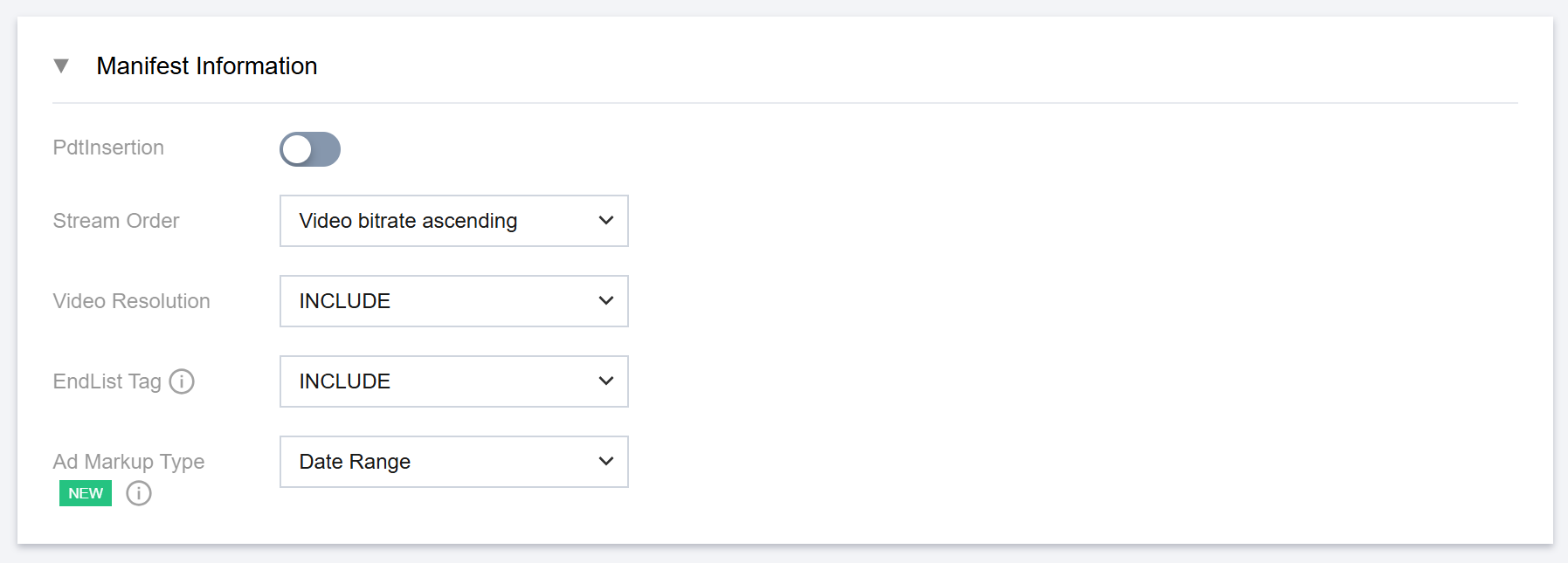 Subsegments Expected:对应 SCTE-35 sub_segments_expected 参数。支持整数,最小值为0、最大值为255。