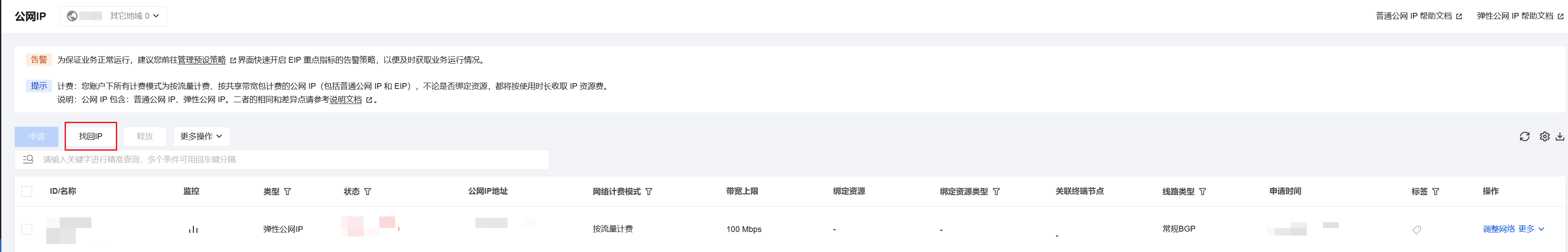 按带宽计费 | 按量计费实例 | ALL | 0 - 100 |