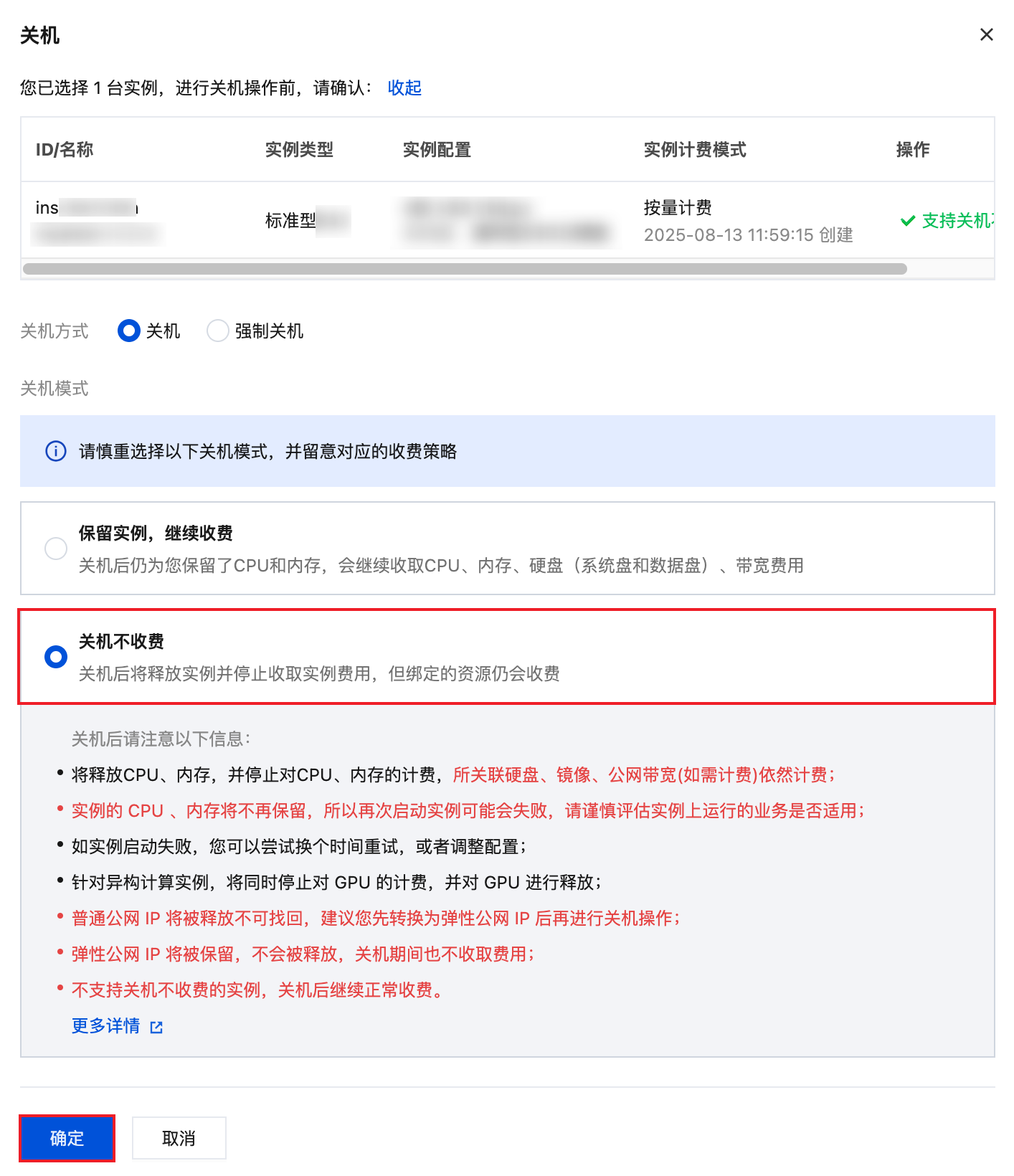 | | 实例计费模式 | 实例配置 |