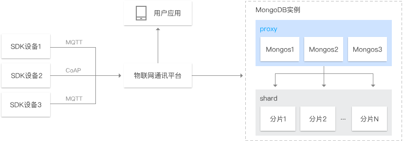 物联网领域的终端设备,例如医疗仪器、运输业车辆 GPS 等,可以轻易且持续的产生 TB 级的数据。云数据库 MongoDB 分片技术可构建分布式数据库集群,达到无上限的容量存储,同时也方便在线扩容。原生的 map-reduce 聚合框架能帮助您从这些数据中挖掘出其隐含的巨大价值。