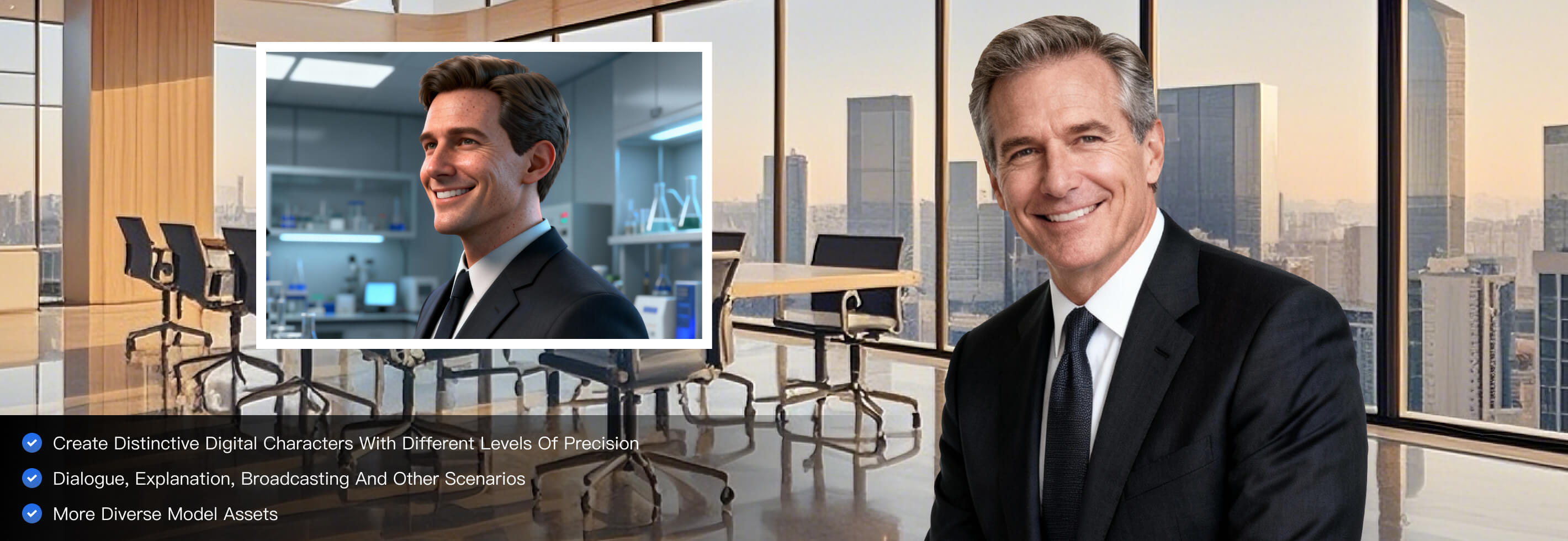 ①精品形象通过在专业影棚中录制动作素材,经过两周左右的训练可生成应用于播报、交互场景的数字人。精品形象可在文中随机插入指定动作,动作呈现多样性。可支持声音驱动、文本驱动。