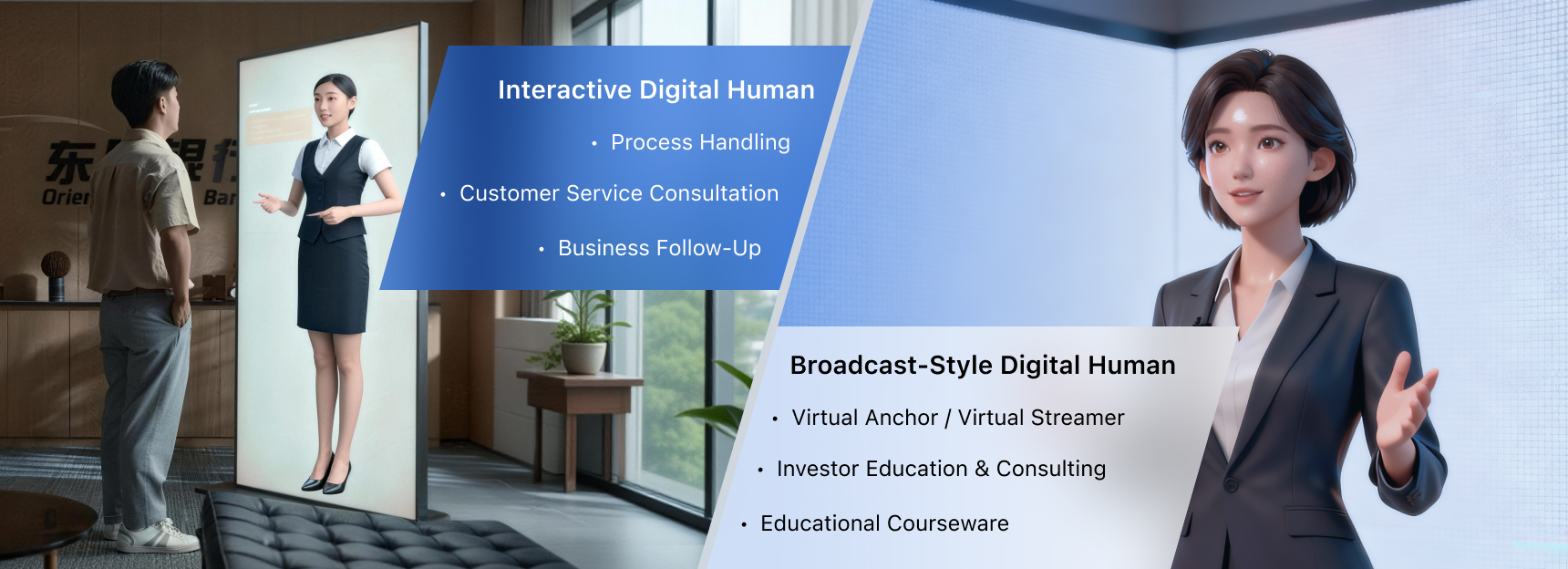 帮助企业降低内容生产的人力成本,提高产品的可信度和价值,帮助品牌打造差异化 IP 能力,使产品更具吸引力和关注度。广泛应用于名师课堂、新闻主播、客服服务、语音助理等场景。